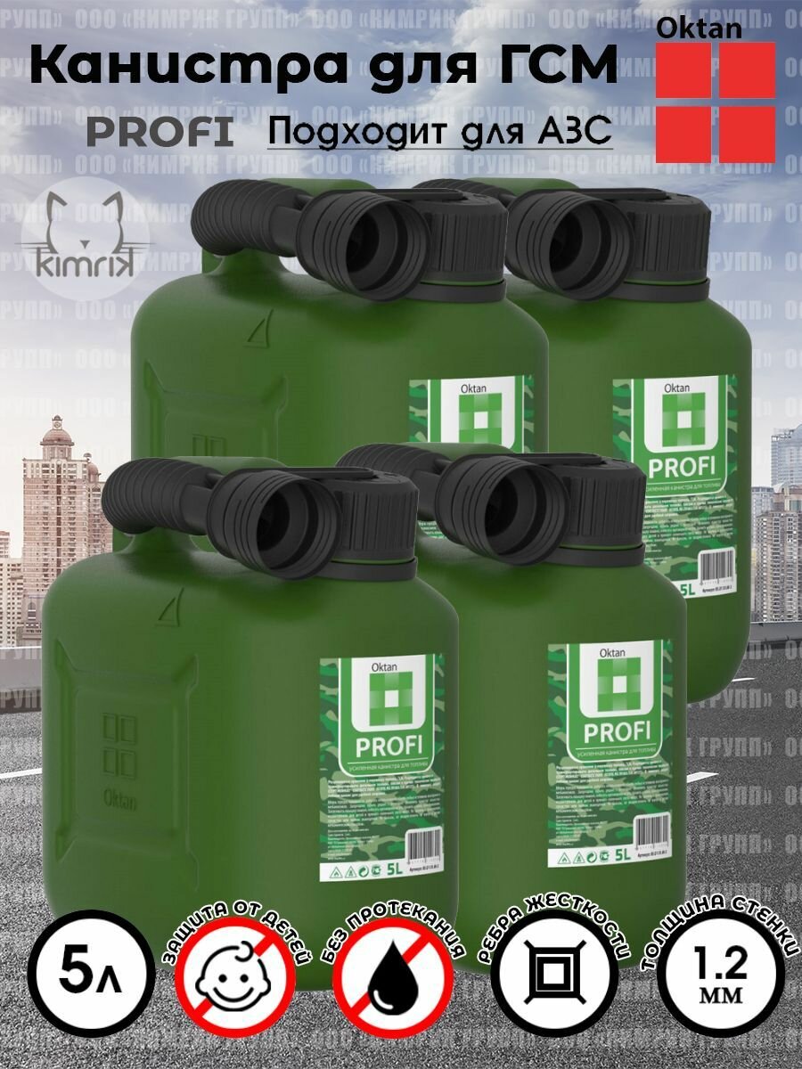Канистры ГСМ PROFI, пластиковая, темно-зеленая, 5 л х 4 шт, Oktan