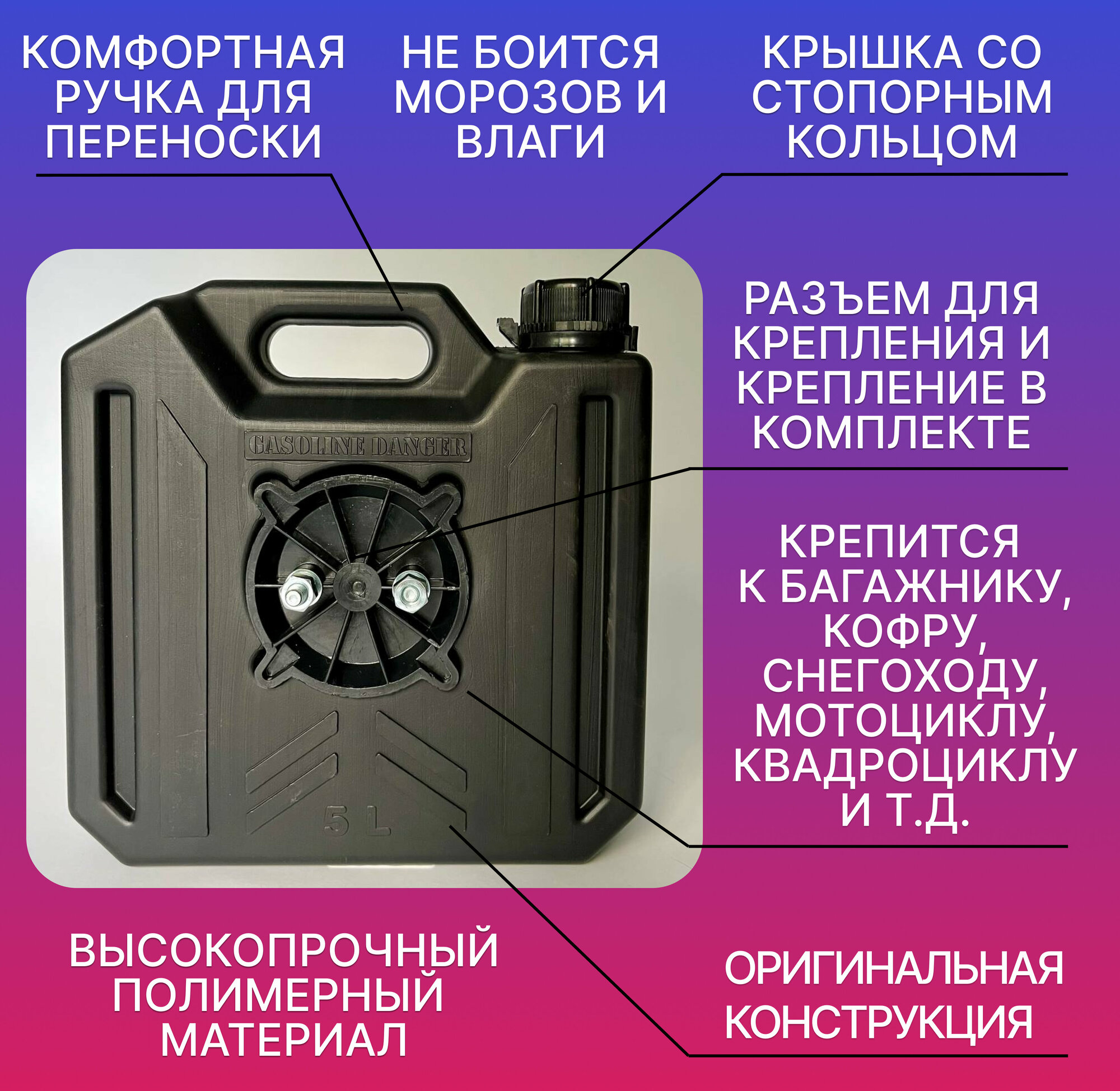Купить Канистра для бензина ART-RIDER 5 л, канистра для воды, канистра экспедиционная, с креплением в комплекте, черная
