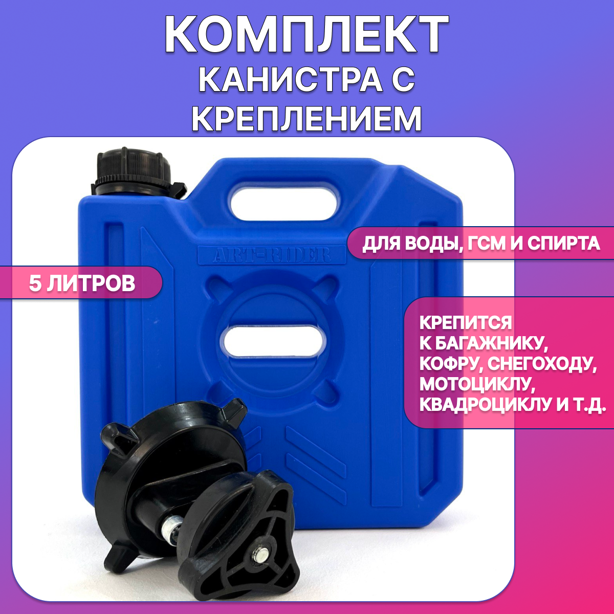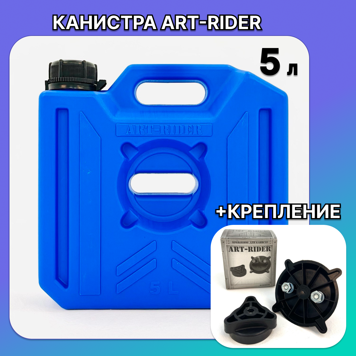 Купить Канистра для бензина ART-RIDER 5 л, канистра для воды, канистра экспедиционная, с креплением в комплекте, синяя
