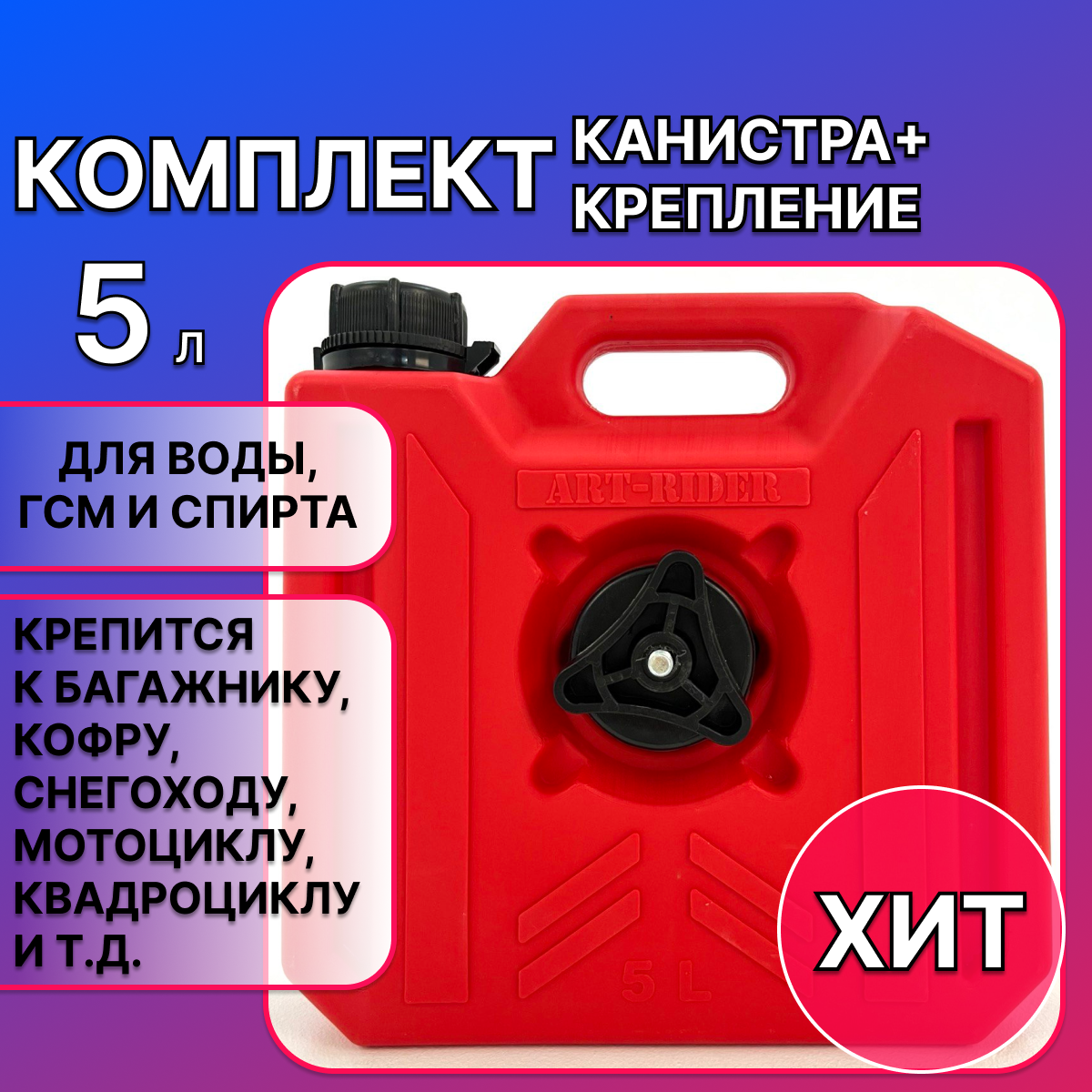 Канистра для бензина ART-RIDER 5 л, канистра для воды, канистра экспедиционная, синяя