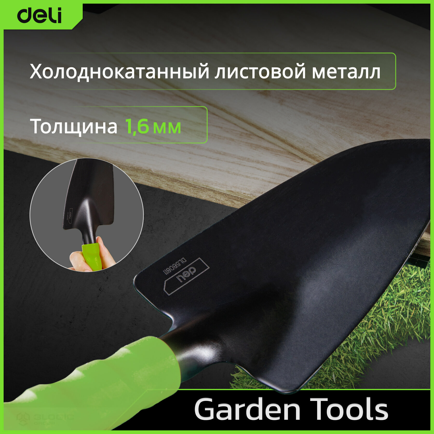 Инструмент Deli Лопатка садовая узкая длина 30 см, защита от ржавчины и коррозии, противоскользящая рукоять