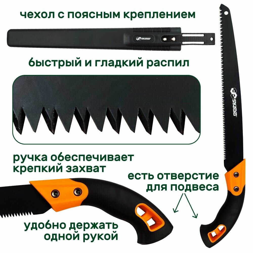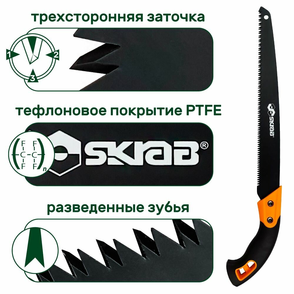 Пила садовая, ножовка с прямым лезвием 350 мм в пластиковом чехле SK5 PTFE SKRAB 28547 интересное: