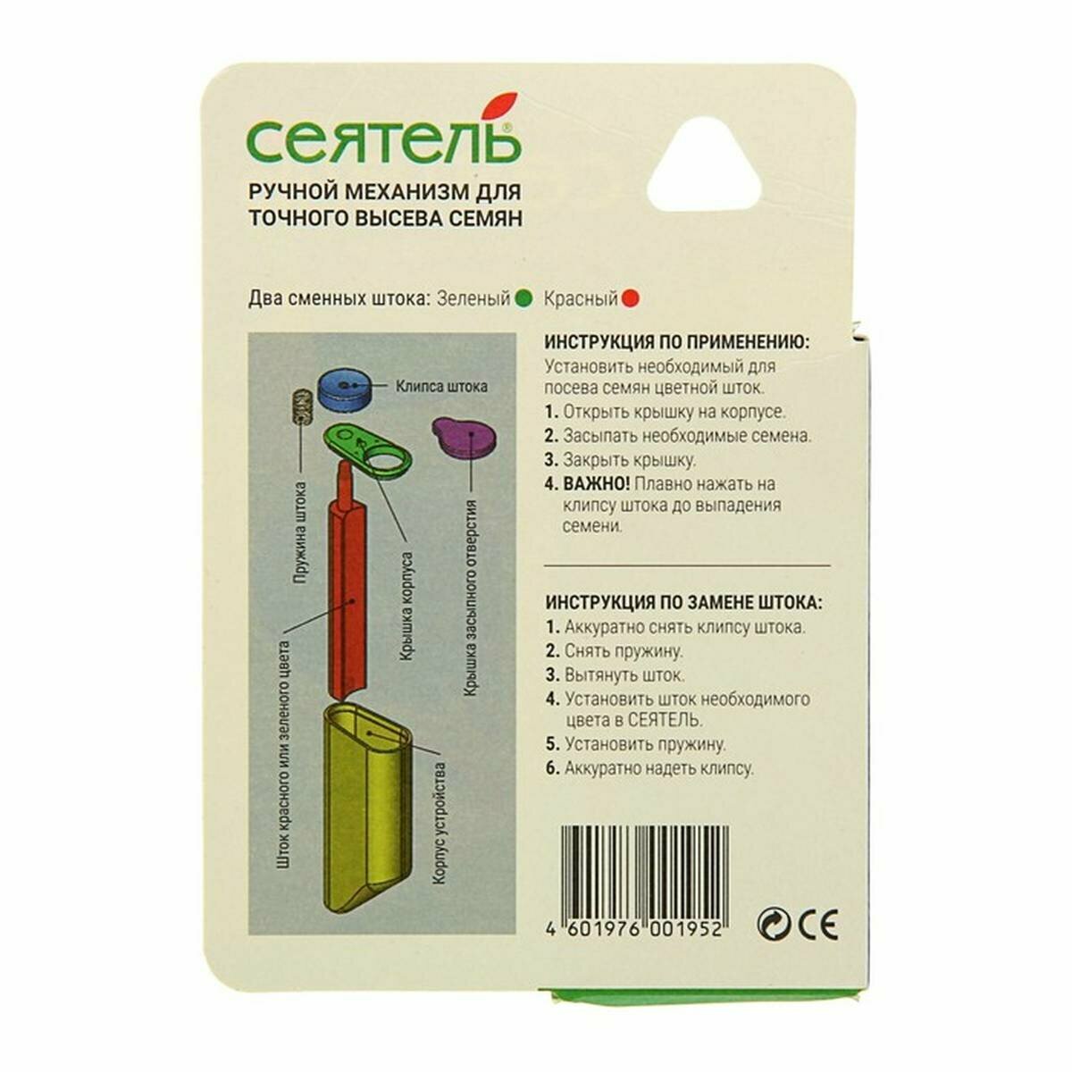 | Дополнительная информация | два штока; для семян диаметром до 1,5 см, и до 3,5 см; материал изделия: пластик: размер товара: 20x100x140 мм |
