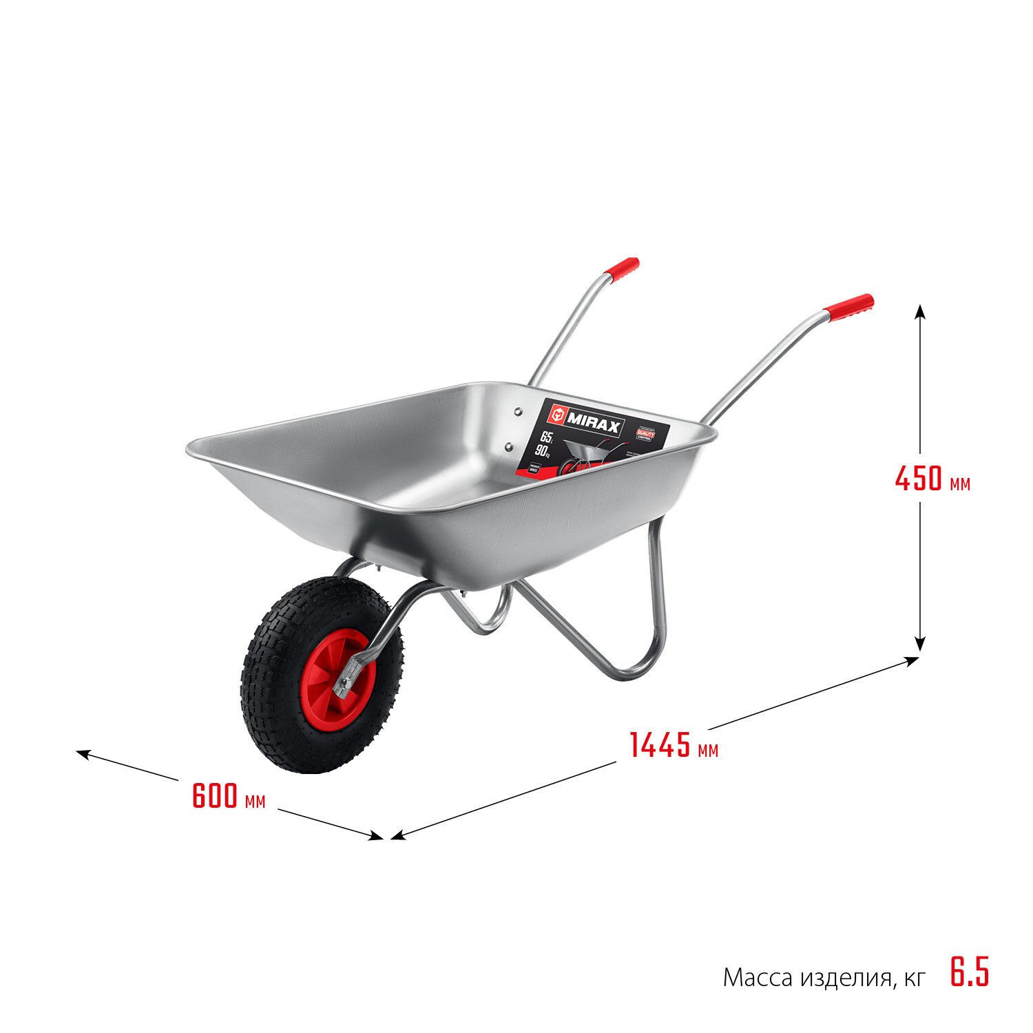 Тачка садовая, оцинкованная одноколесная MIRAX MX-1, 65 л, 90 кг. интересное:
