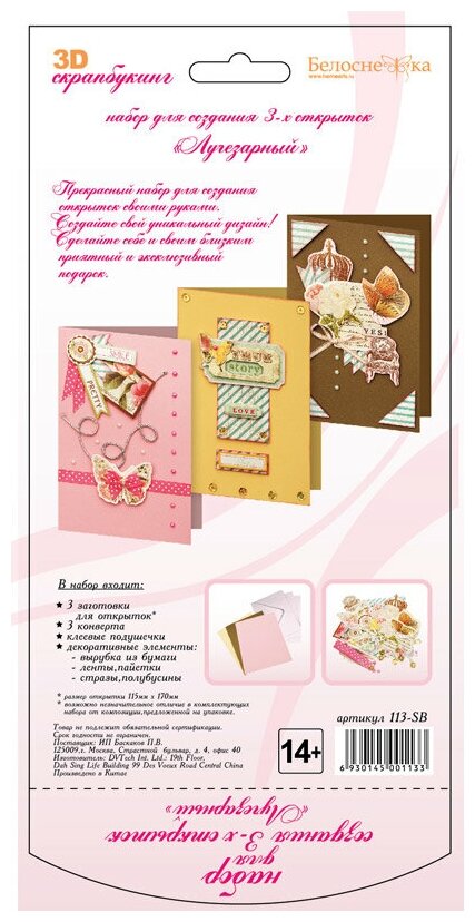 Ниже Вы можете прочитать отзывы на Белоснежка 113-SB Набор для создания 3-х открыток "Лучезарный" Заготовки / Скрапбукинг / Для хобби и рукоделия, ознакомится с подробными характеристиками, посмотреть интересные обзоры и фотографии на Белоснежка 113-SB Набор для создания 3-х открыток "Лучезарный" Заготовки / Скрапбукинг / Для хобби и рукоделия.