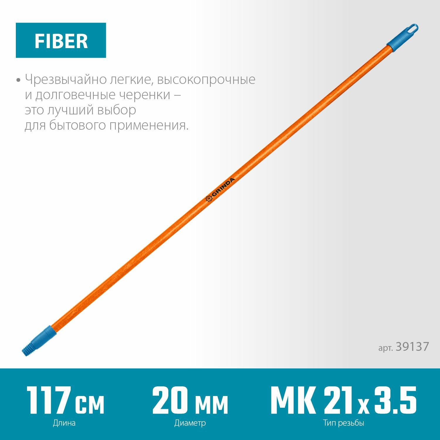 GRINDA FIBER-120, фибергласовый, коническая резьба, длина 1170 мм., черенок для щеток (39137) (39137)