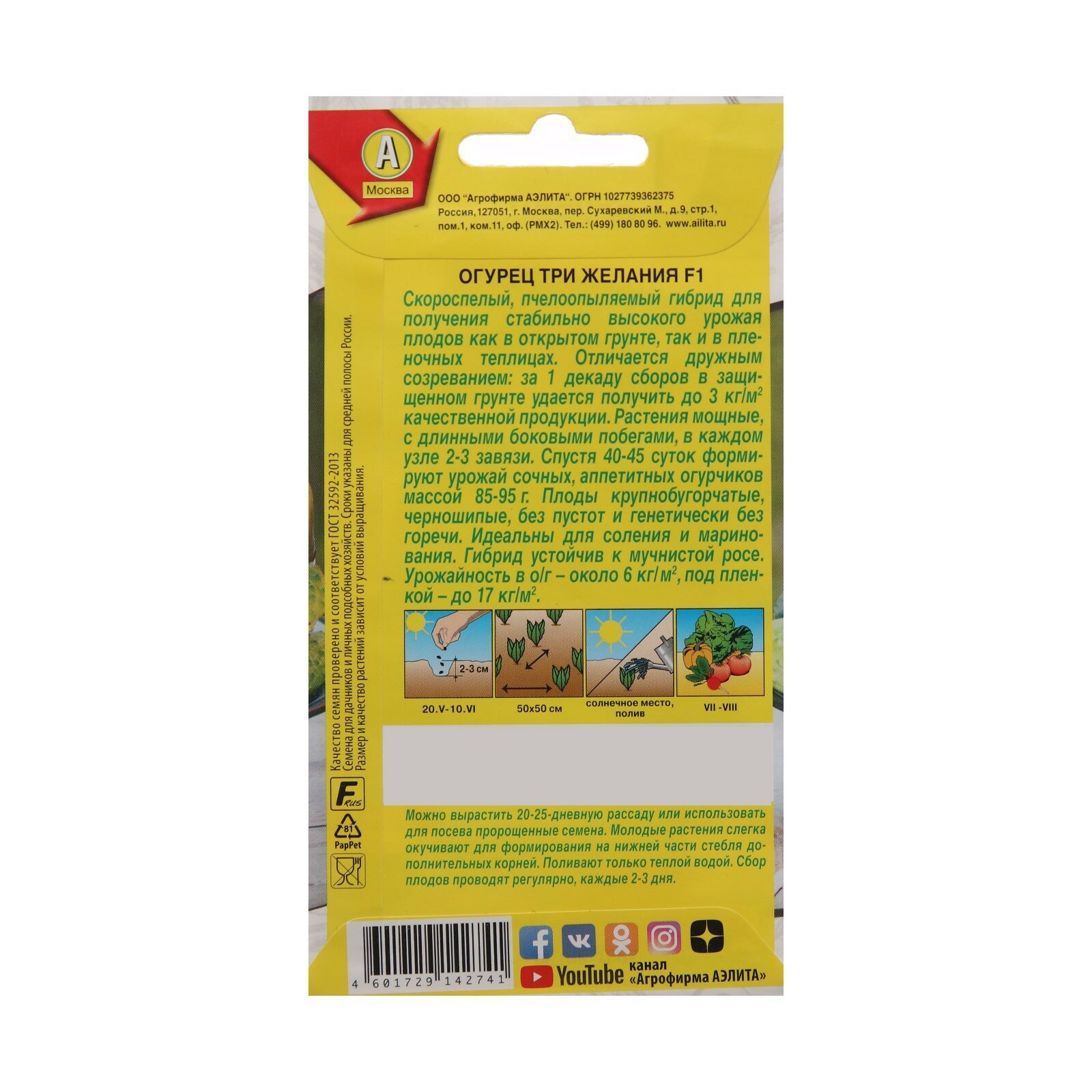 Ниже Вы можете прочитать отзывы на Агрофирма аэлита Семена Огурец "Три желания", F1, 10 шт, ознакомится с подробными характеристиками, посмотреть интересные обзоры и фотографии на Агрофирма аэлита Семена Огурец "Три желания", F1, 10 шт.