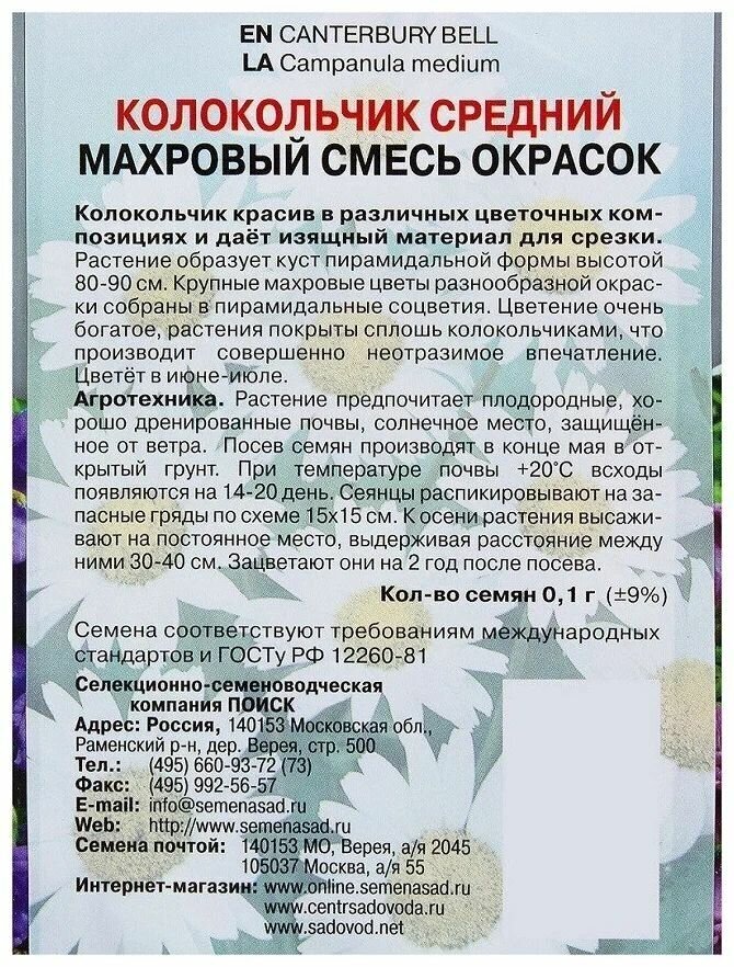 Колокольчик средний Махровый смесь окрасок 0,1 грамм, Поиск интересное: