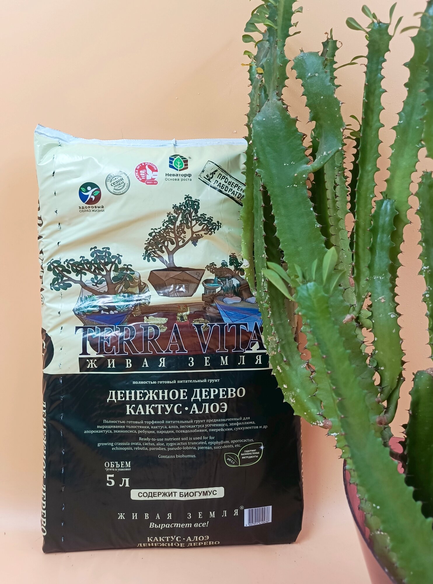 Универсальный питательный грунт для кактусов, алоэ, денежного дерева и суккулентов 5 литров, готовый почвогрунт живая земля для цветов и комнатных растений интересное: