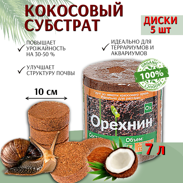 СохранитьКокосовый субстрат диски 5 шт Орехнин d 100мм 7 л интересное: