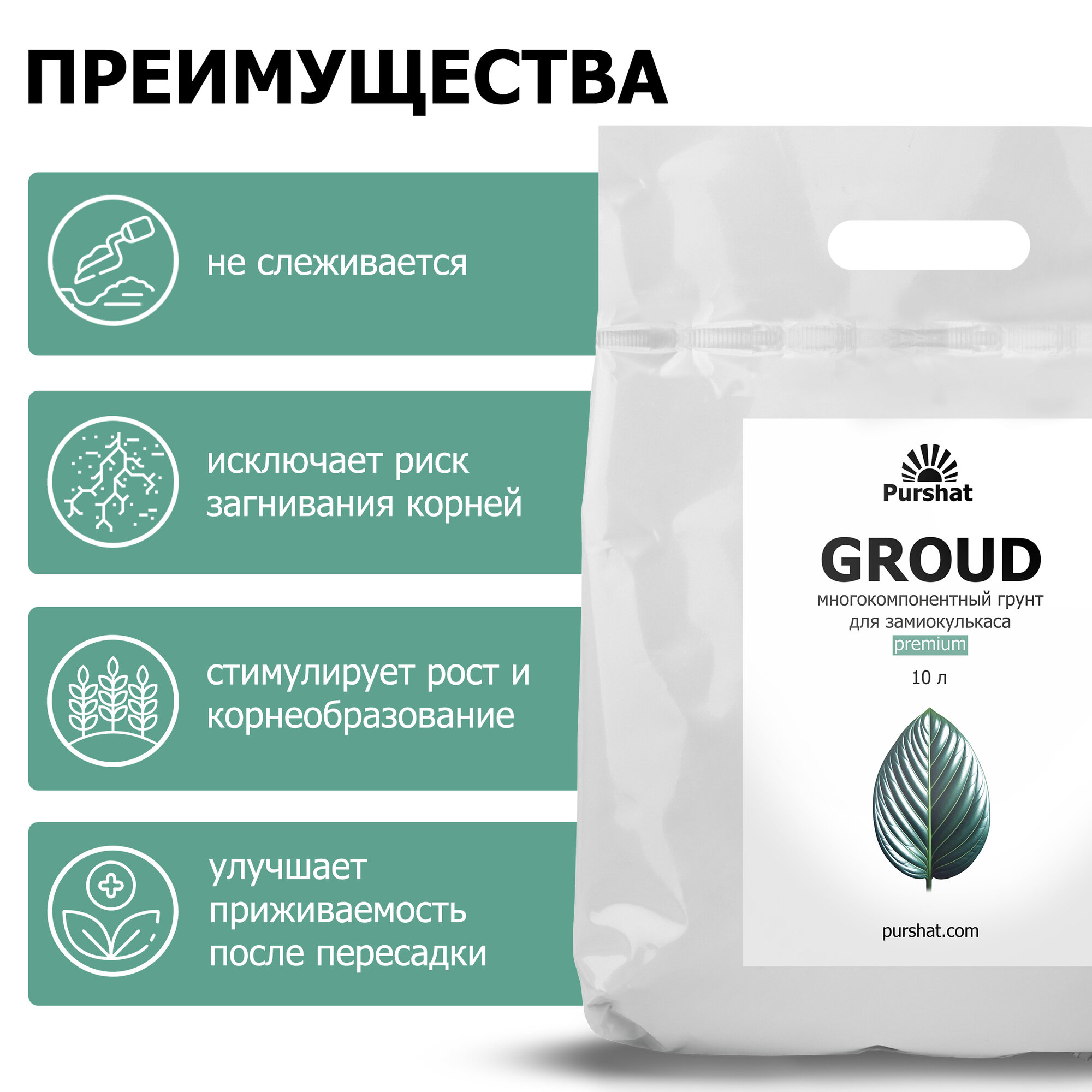 Купить Почвогрунт Prеmium для замиокулькаса Пуршат 10 л