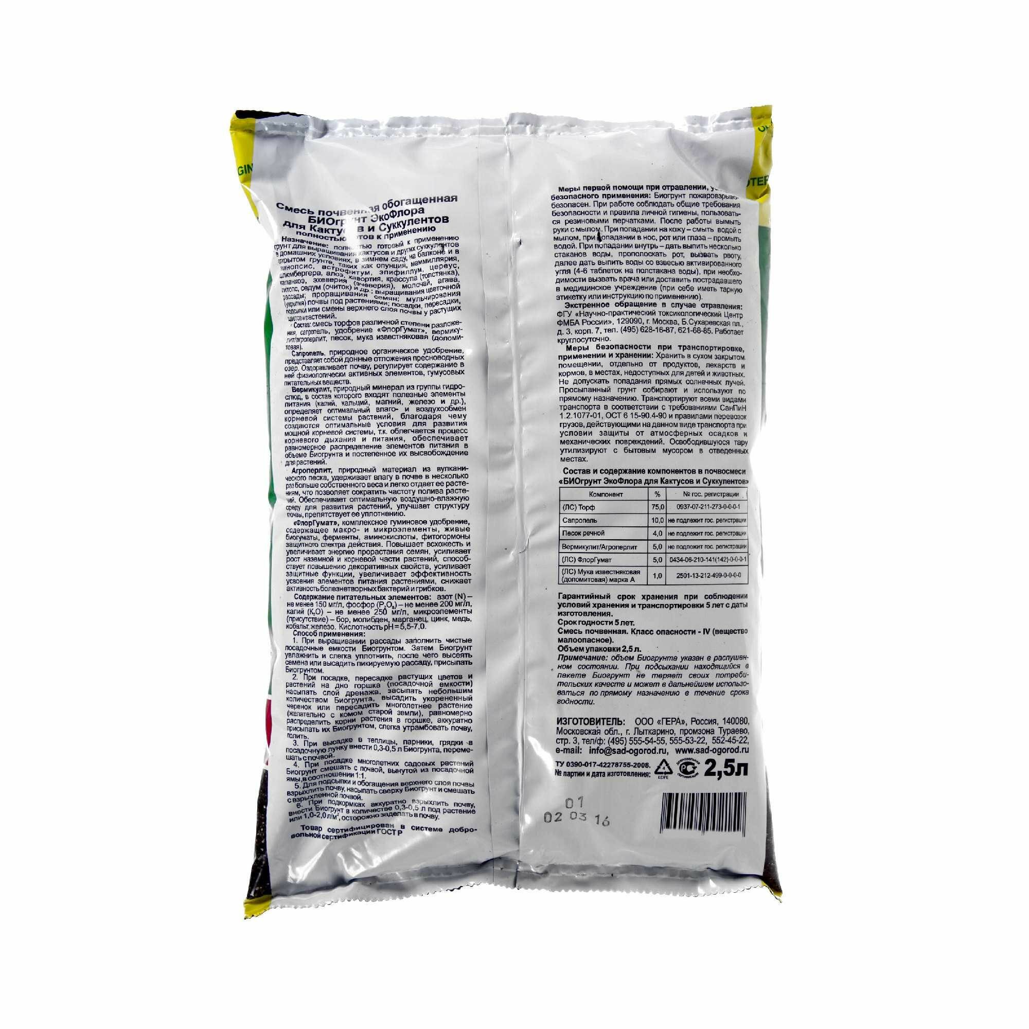 Грунт для кактусов и суккулентов 2.5 л интересное: