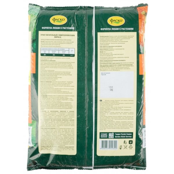 | Основные питательные вещества в мг/л, не менее | N - 250; P2O5 - 400; K2O - 500; pH - 6-7 |