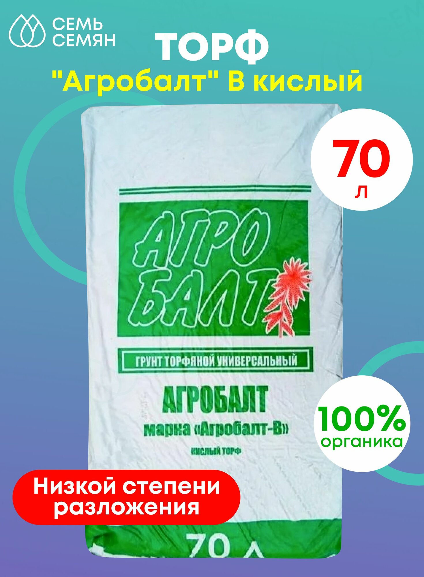 Торф верховой кислый "Агробалт-B" 70л