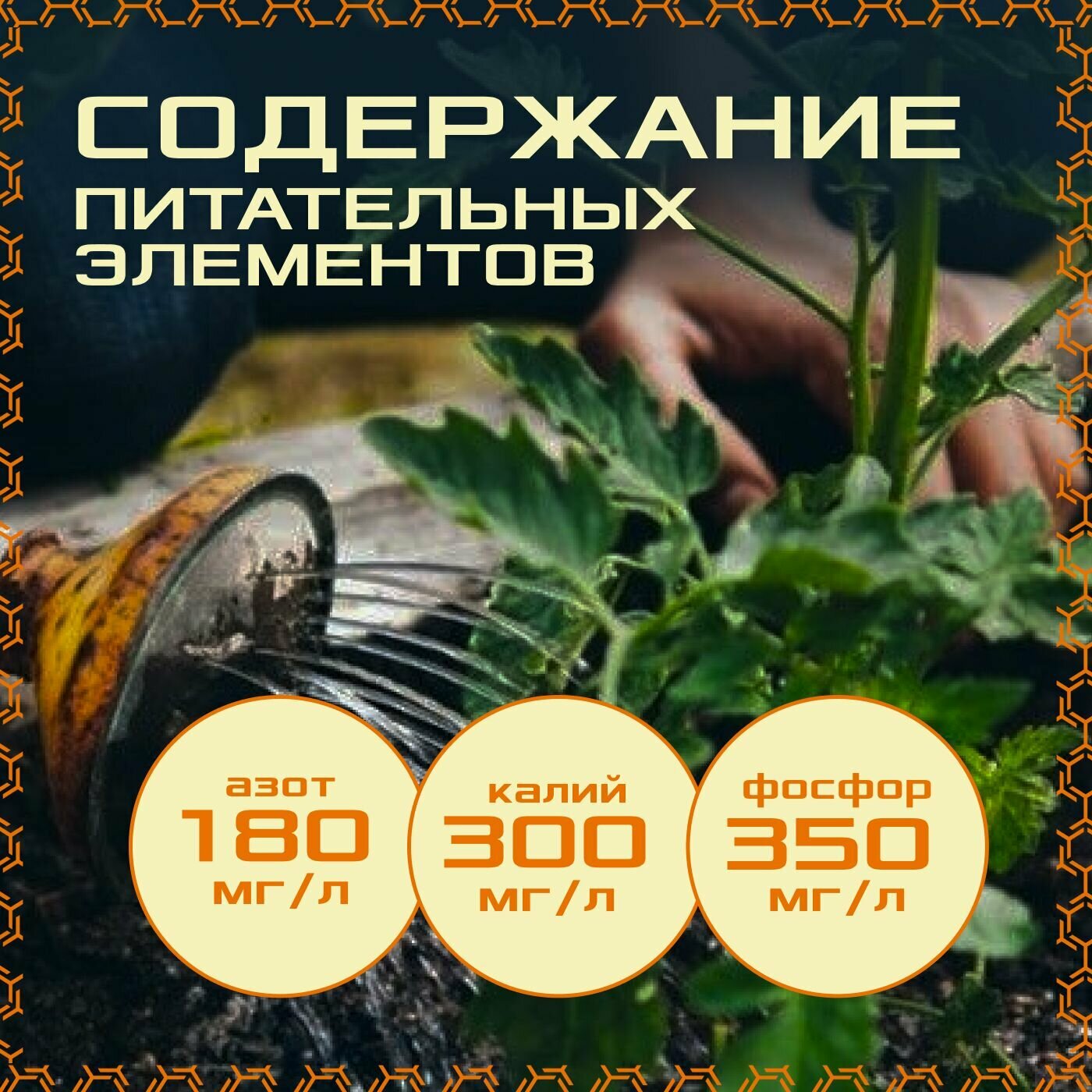 | Основные питательные вещества в мг/л, не менее | азот (NH4+NO3) - 180; фосфор (P2O5) - 300; калий (K2O) - 350; pH солевой суспензии - 6,0-6,5 |