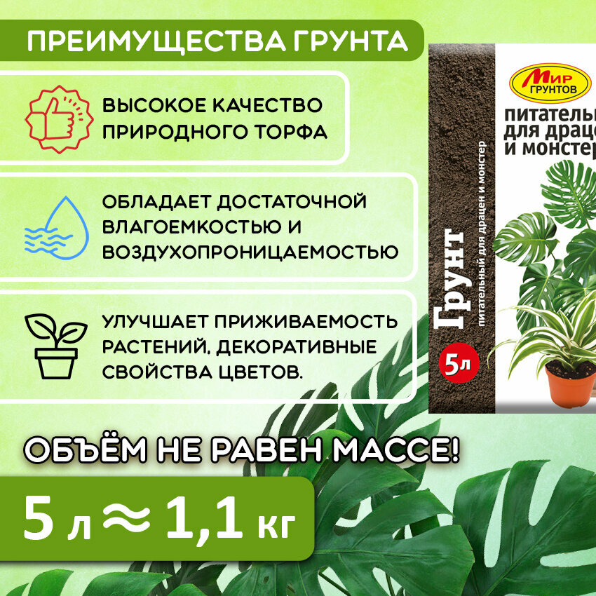 Мир грунтов Набор для комнатных растений Грунт питательный для драцен и монстер, удобрение и дренаж интересное:
