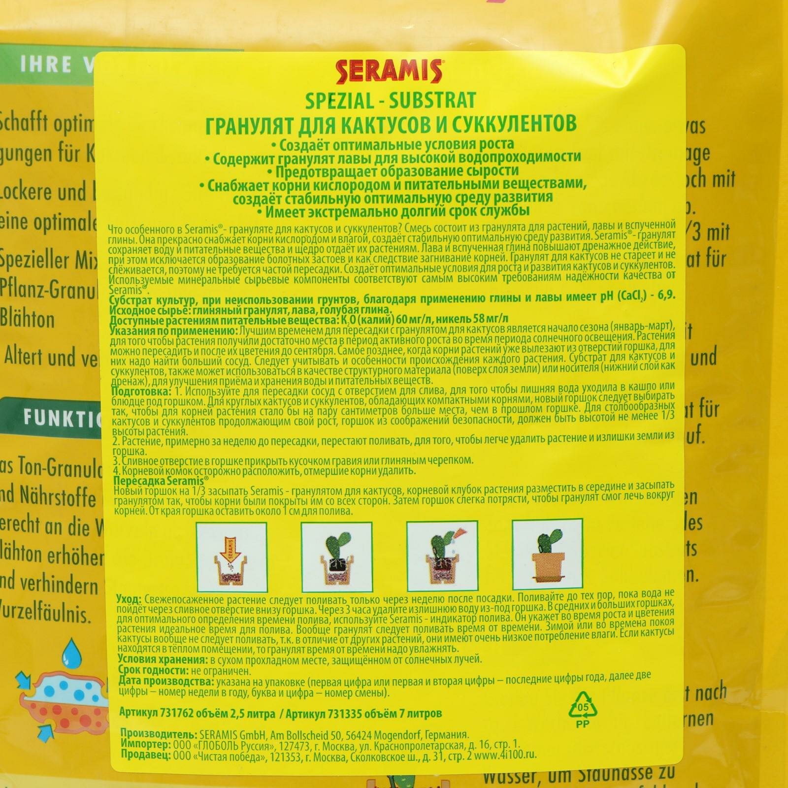 | Состав | Seramis Гранулят для Кактусов и суккулентов Seramis, 7 л |