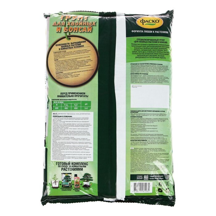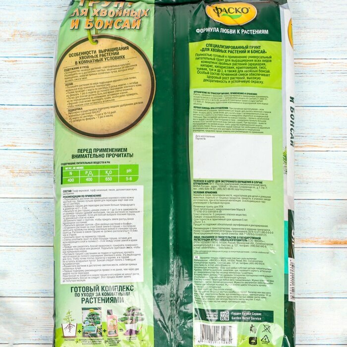 | Дополнительная информация | Почвогрунт для хвойных растений и бонсай фаско 5л |