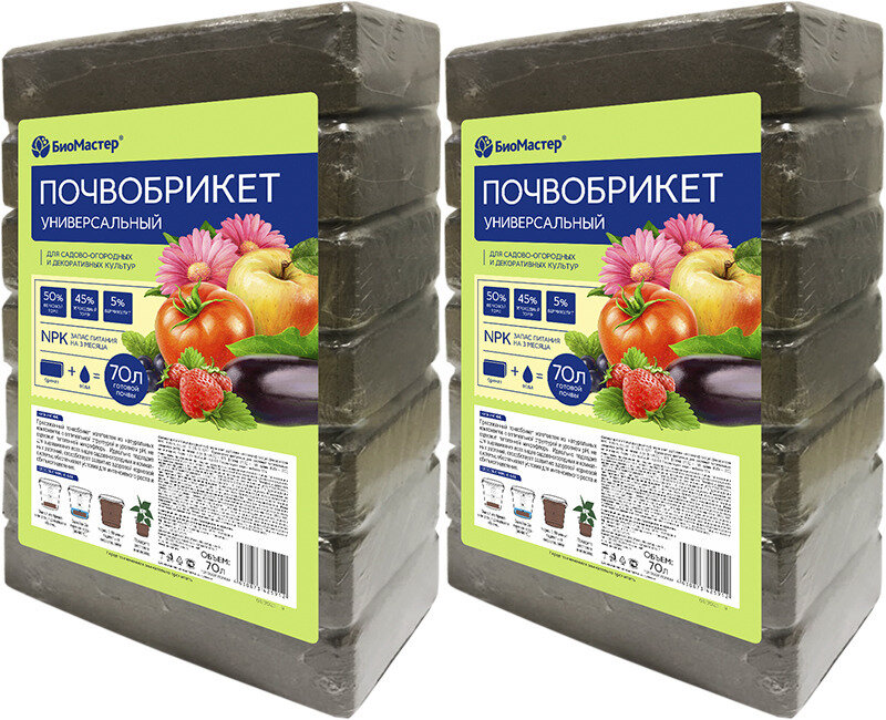 Купить Почвобрикет универсальный БиоМастер, 2 шт по 70 л