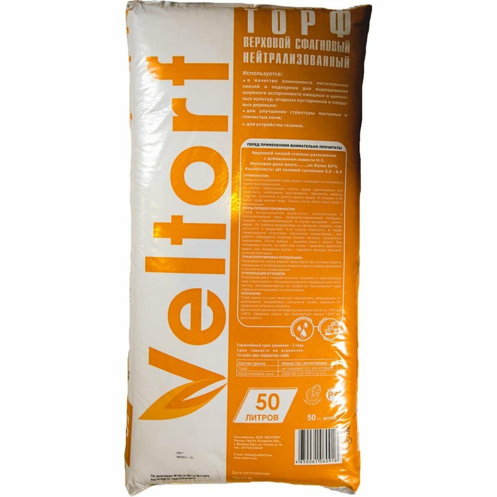 Торф верховой "Veltorf", нейтрализованный, 50 литров в пакете