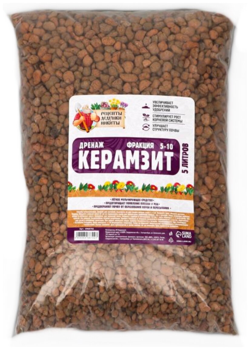 Дренаж Керамзит "Рецепты Дедушки Никиты" фр 5-10, 5 л интересное: