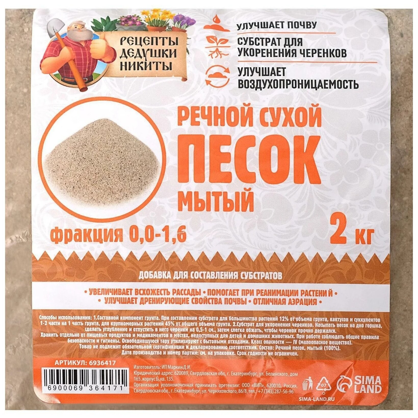 Речной песок "Рецепты дедушки Никиты", сухой, фр 0,8-1,6, 2 кг