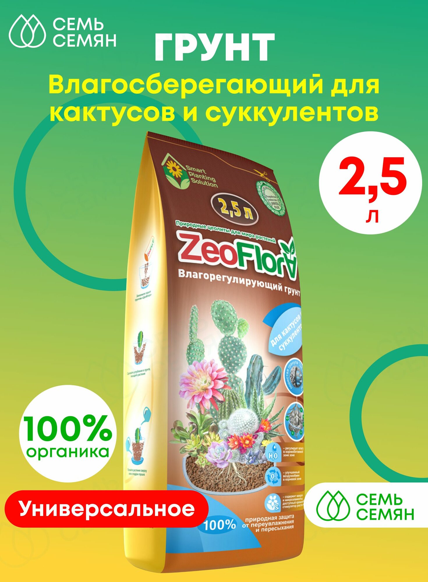 Грунт влагорегулирующий для Кактусов и суккулентов ZEOFLORA 2,5 л интересное: