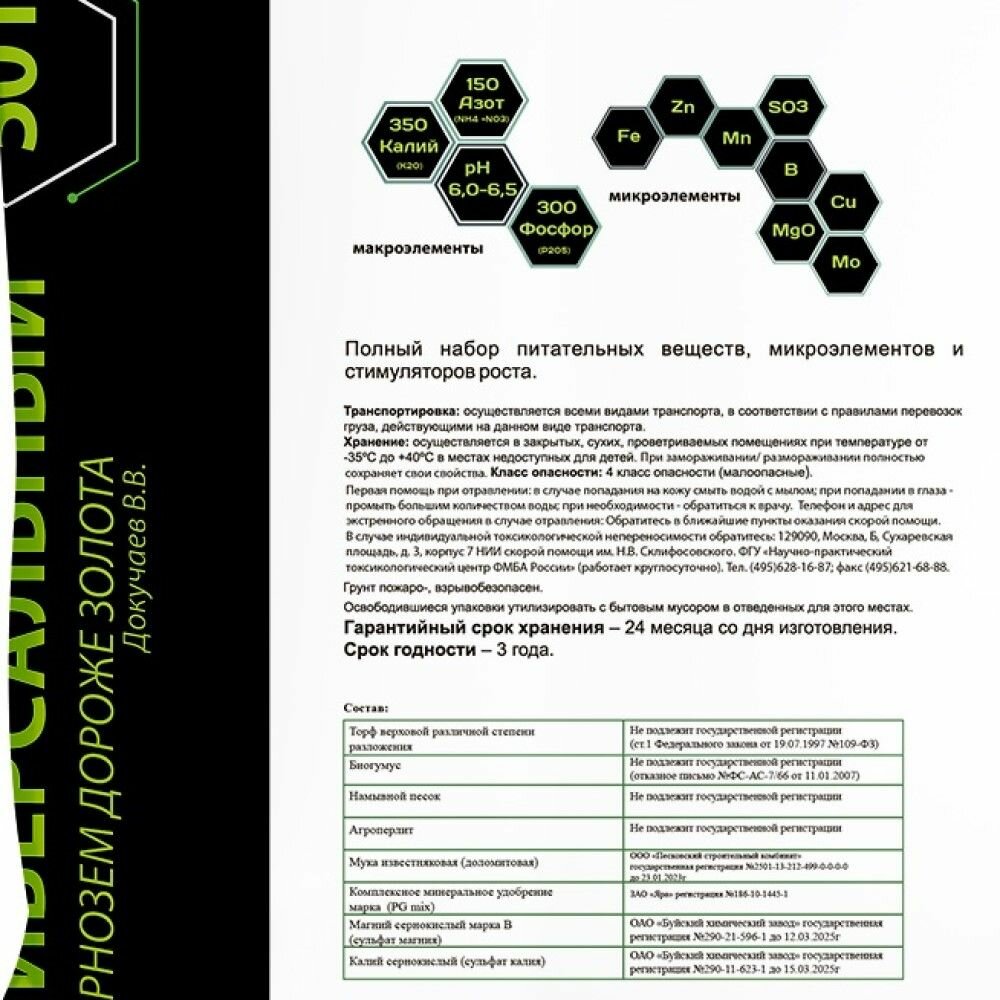 | Основные питательные вещества в мг/л, не менее | - 150 Азот (NH4+NO3) - 350 Калий (K20) - 300 Фосфор (P2О5) - pH солевой суспензии (5,8) |