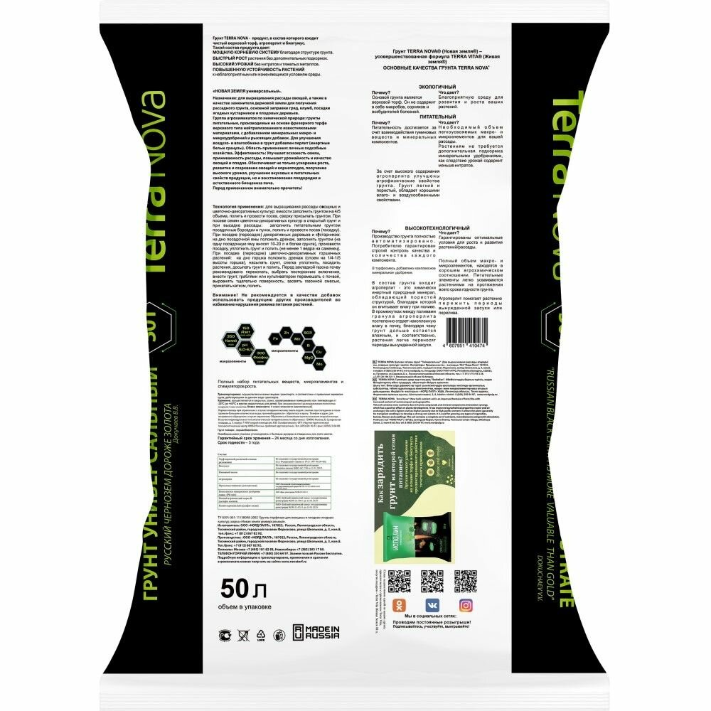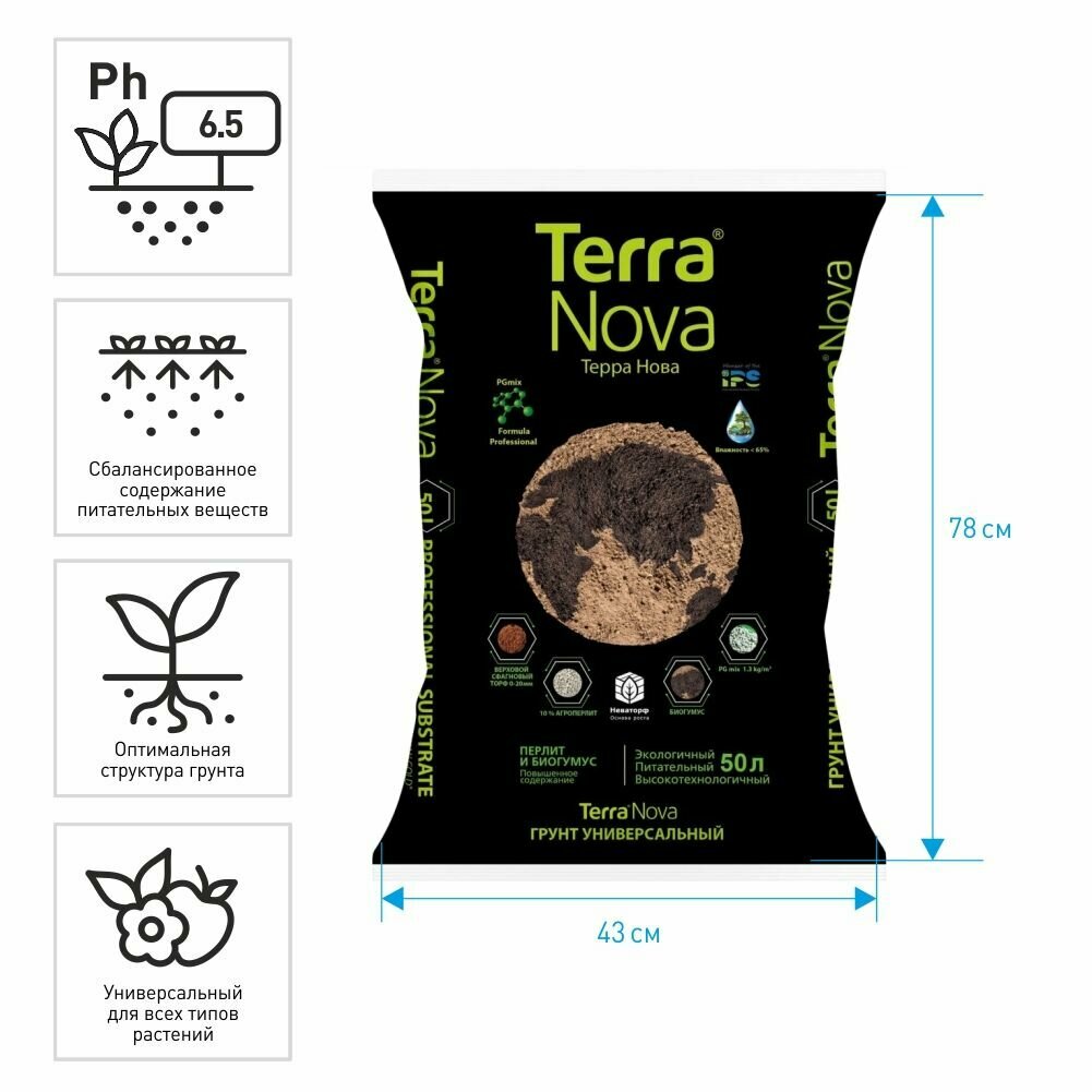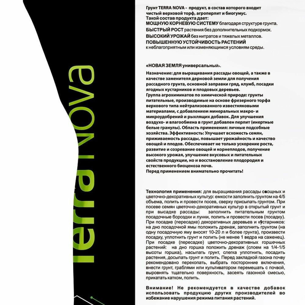 | Состав | Питательный грунт Terra Nova универсальный с биогумусом и агроперлитом |