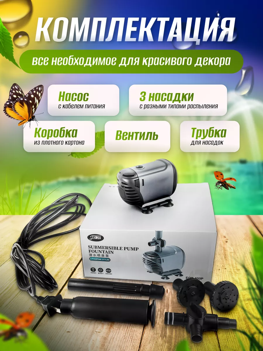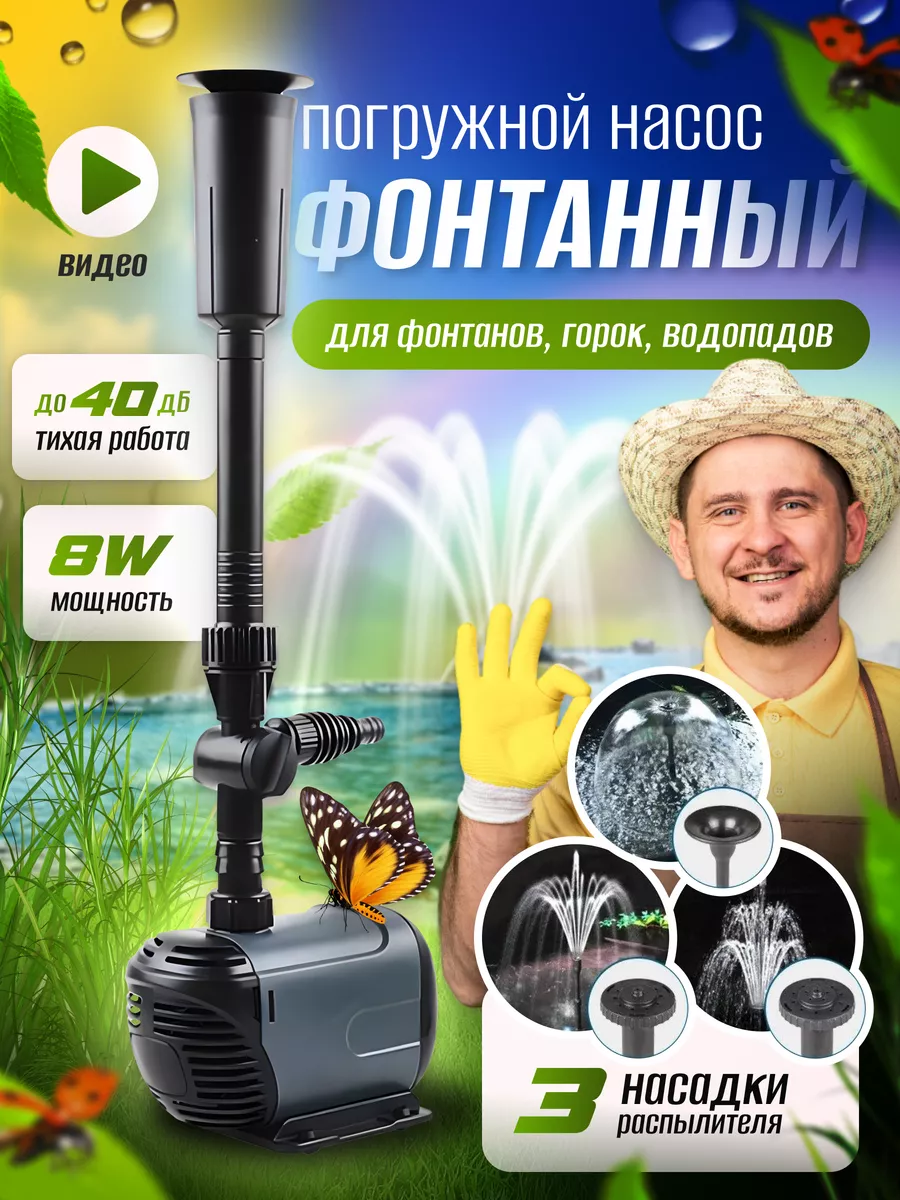 Насос фонтанный с насадками 8Вт 600 л/ч интересное:
