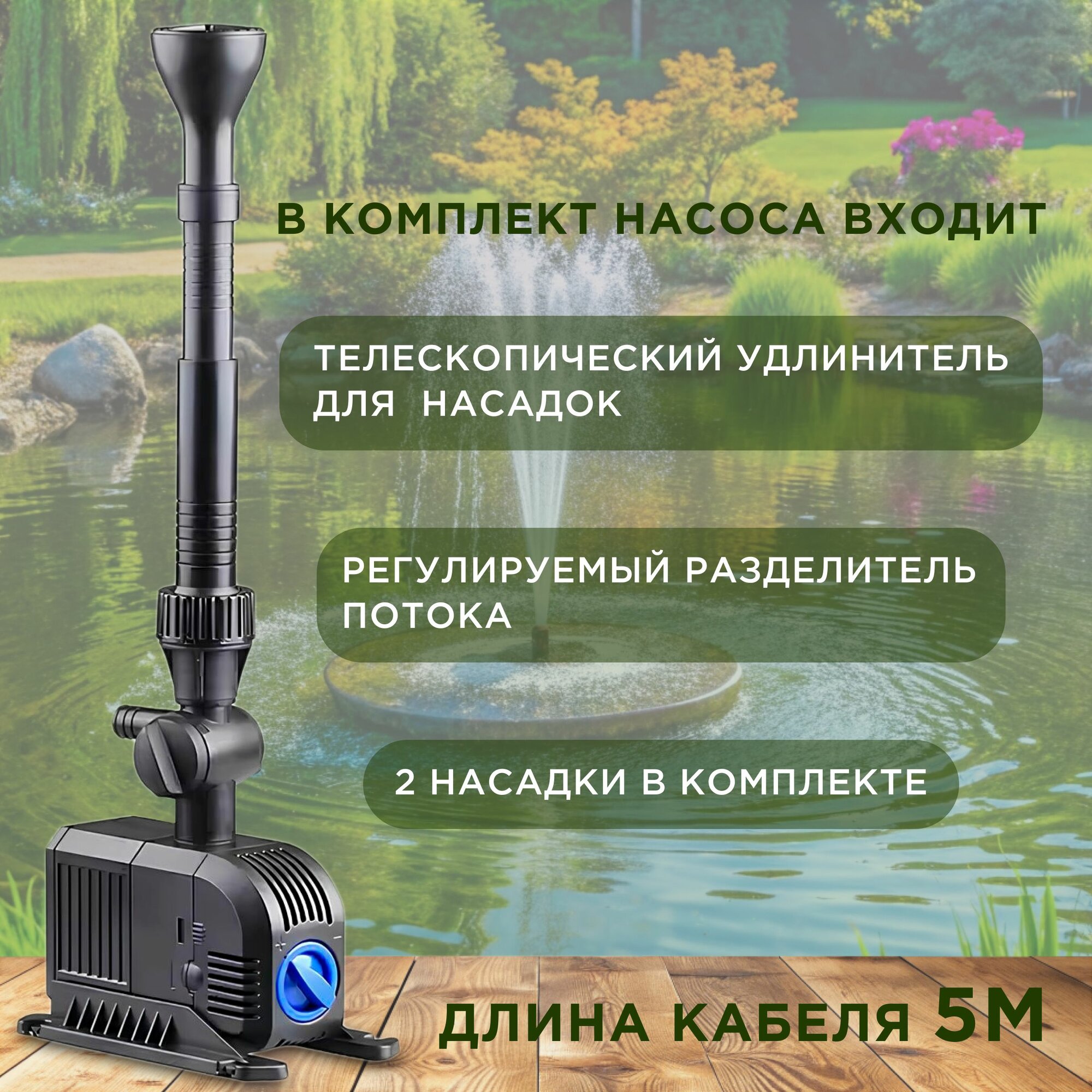 Насос фонтанный SunSun HJ-1103 с регулятором мощности + 2 насадки в комплекте. Мощность 20 Вт, макс. подъем воды 1,5 м, производительность 900л/ч интересное:
