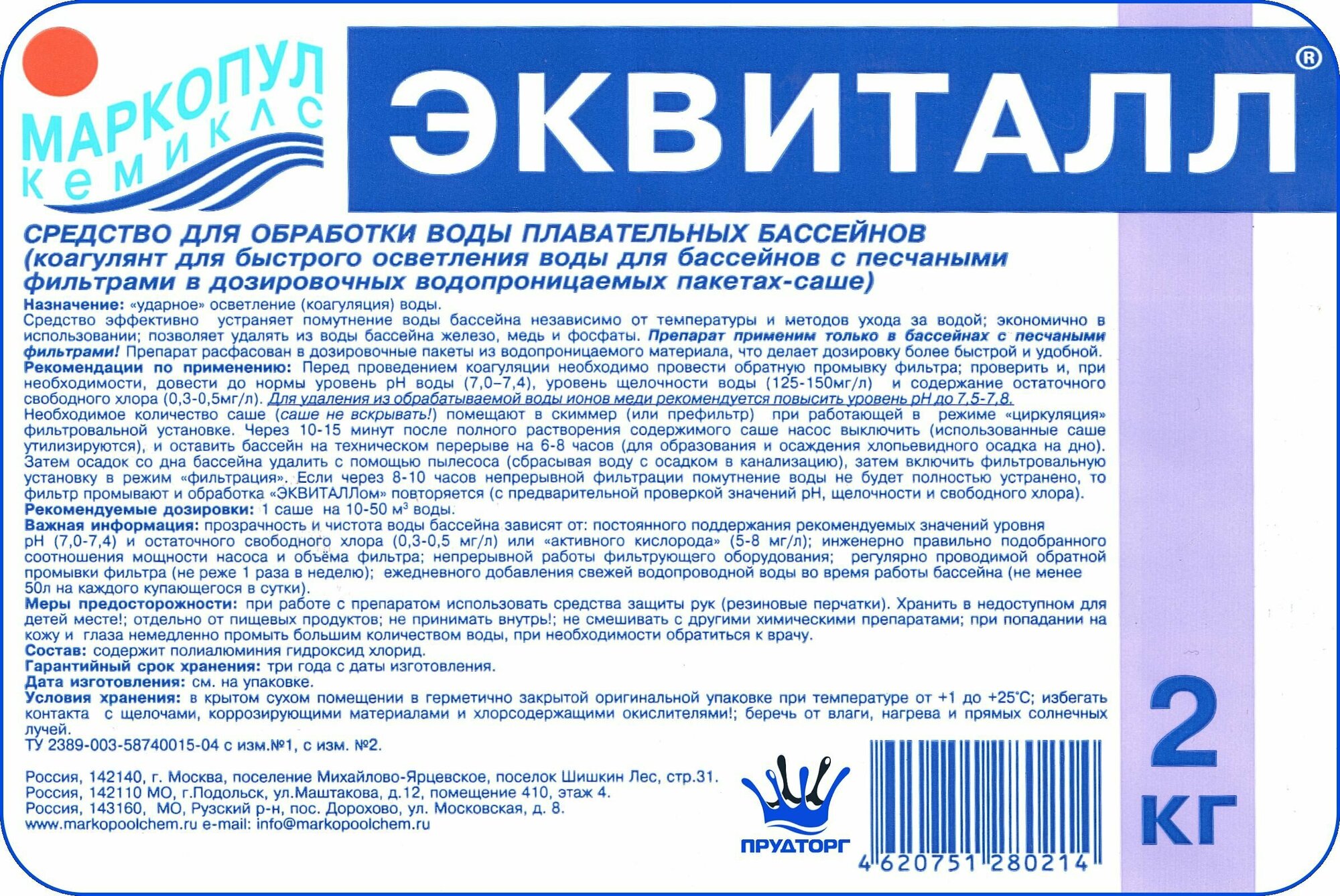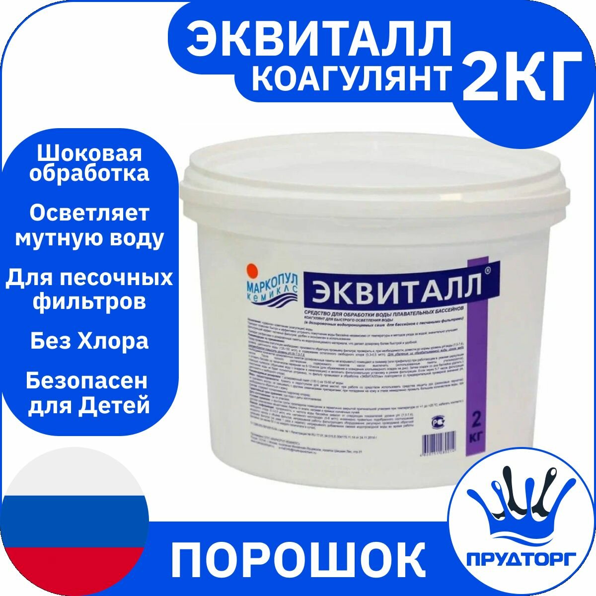 Эквиталл коагулянт осветлитель воды, порошок маркопул кемиклс, ведро 2кг