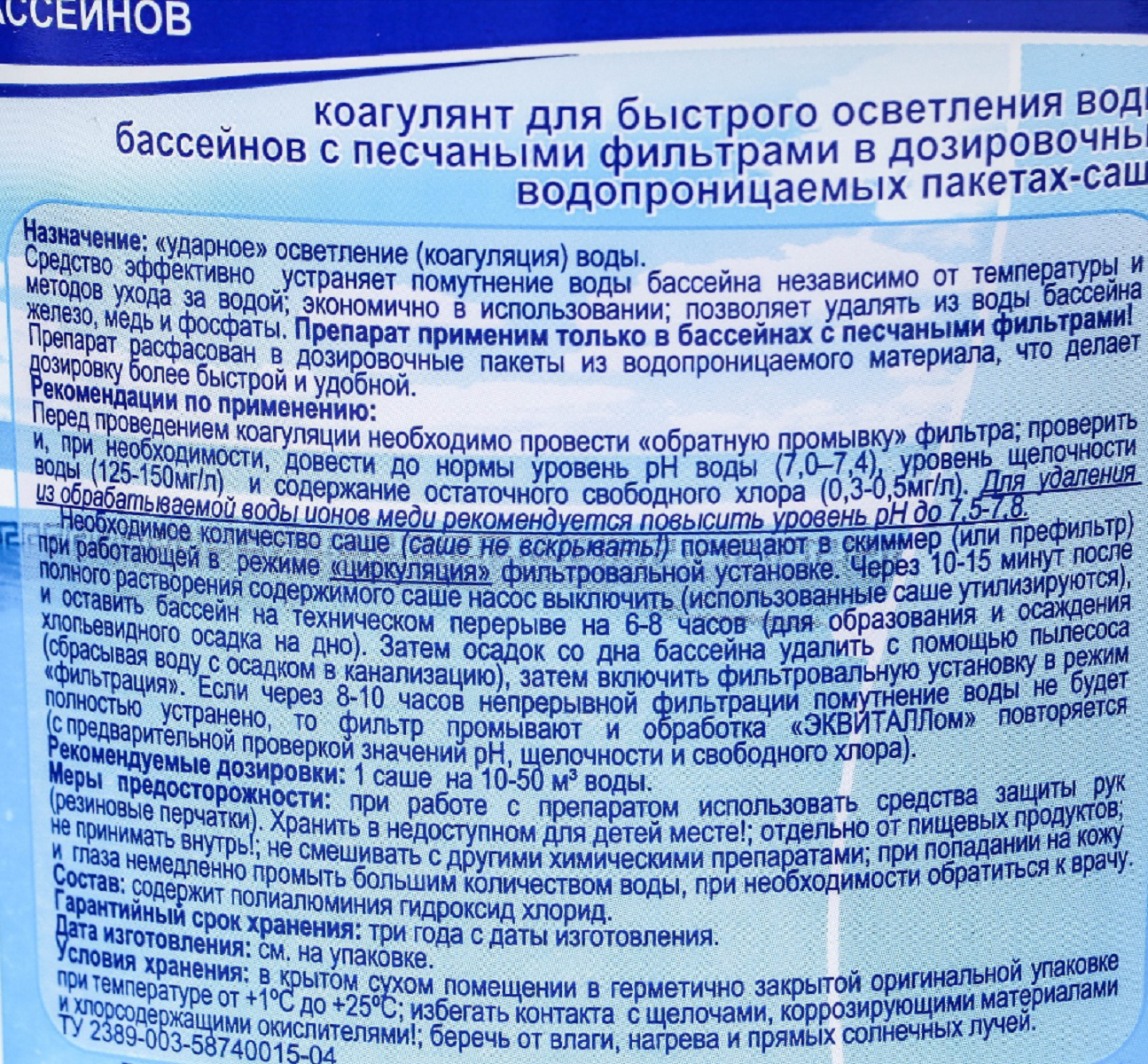 Коагулянт пролонгированного действия для бассейнов Эквиталл в картриджах 2 кг