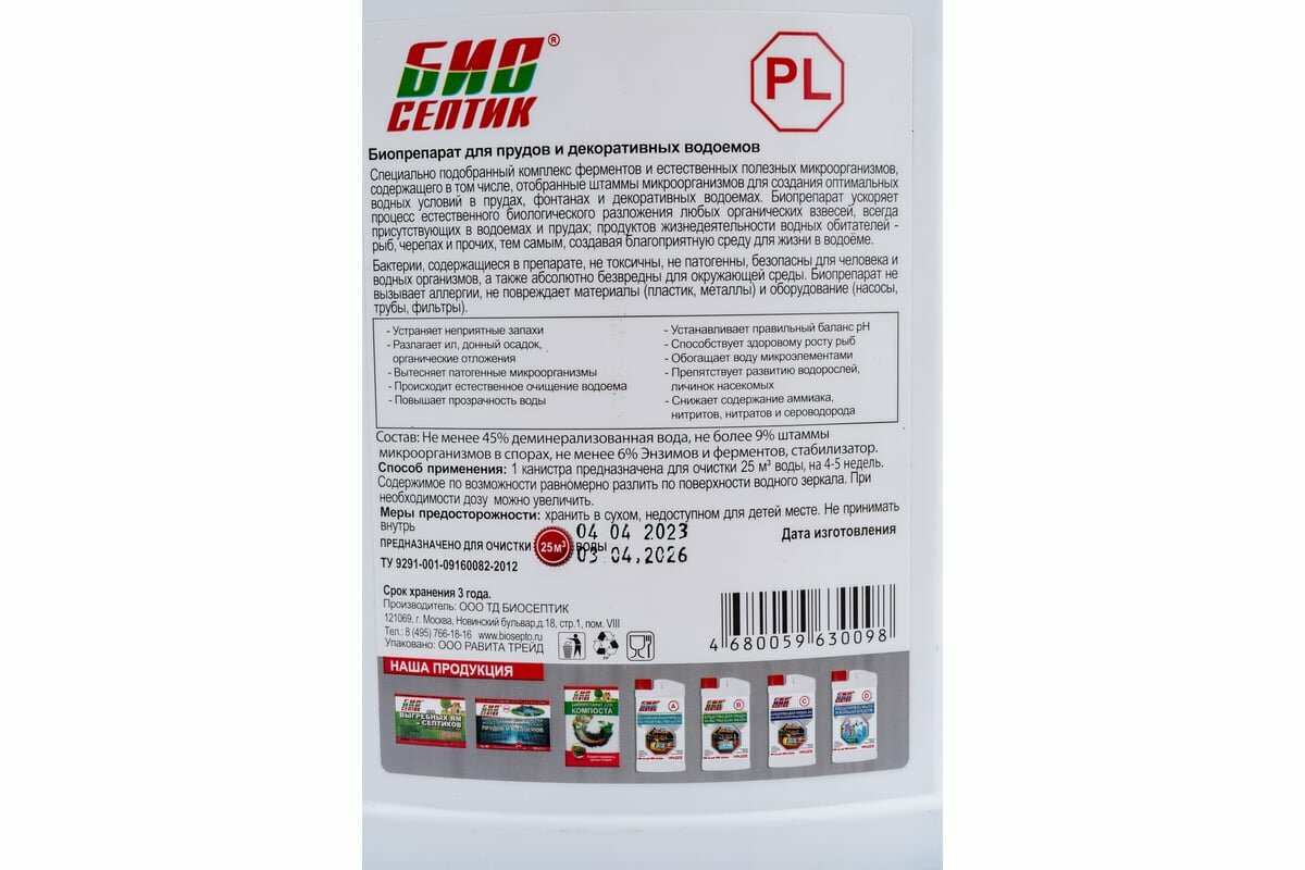 Биосептик биопрепарат д очистки искусственных и естественных водоёмов 960мл PL интересное: