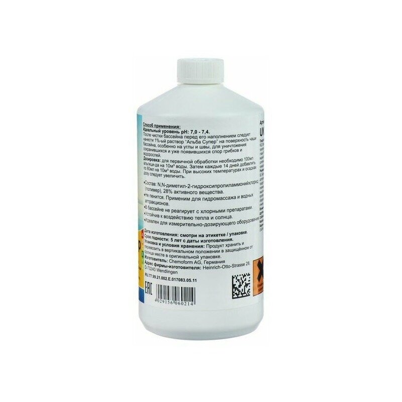 Средство против водорослей, бактерий и грибков в бассейне Альба Супер 28% Chemoform,5л.(непенящийся)
