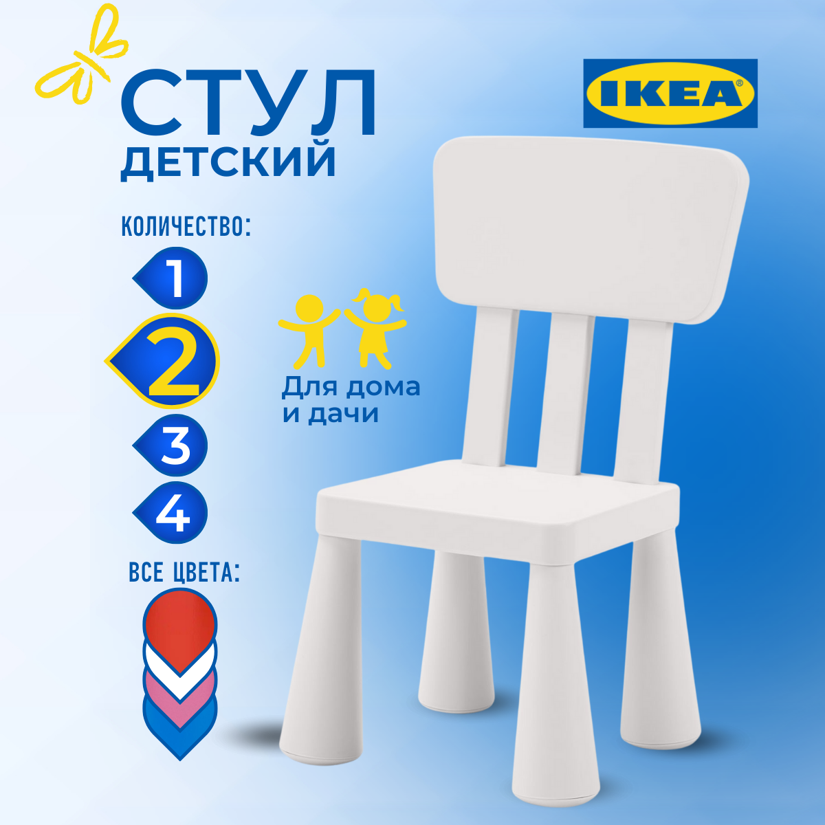 Купить Детский стул икеа маммут (IKEA MAMMUT ), 39х36х67 см, 2 шт, белый