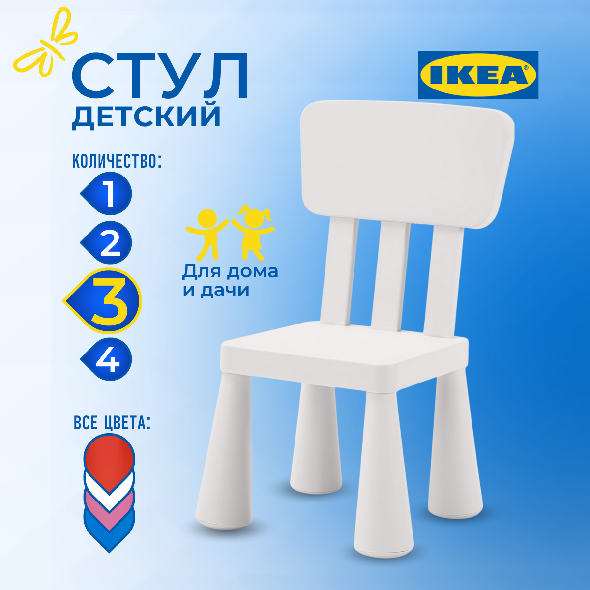 Ниже Вы можете прочитать отзывы на Детский стул икеа маммут (IKEA MAMMUT ), 39х36х67 см, 3 шт, белый, ознакомится с подробными характеристиками, посмотреть интересные обзоры и фотографии на Детский стул икеа маммут (IKEA MAMMUT ), 39х36х67 см, 3 шт, белый.