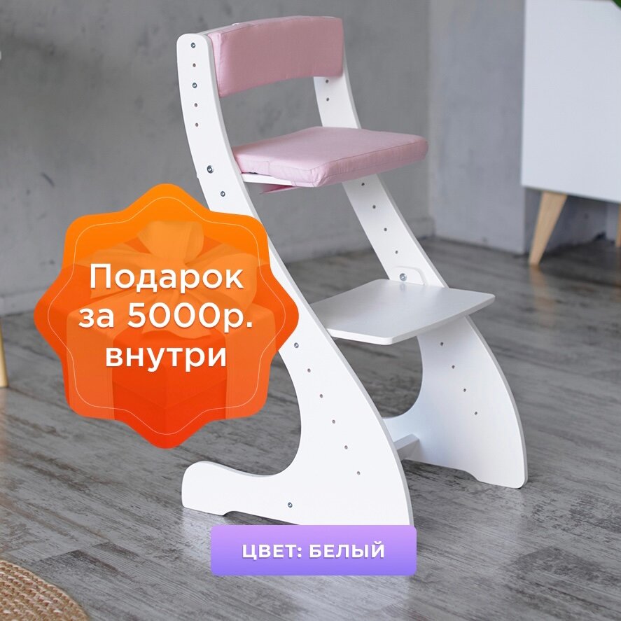 Купить Растущий стул детский Klikkin белый и подушки розовые