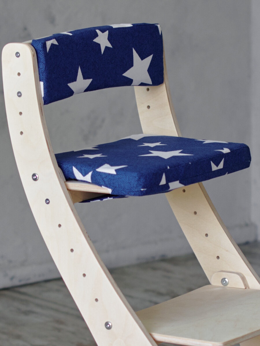 Растущий стул детский Klikkin орех с синими подушками Звезда