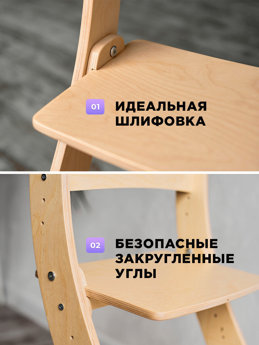 Стул ученический регулируемый "ДЭМИ" СУТ.01, 400х330-343х795-874 мм, серый каркас, фанера лак