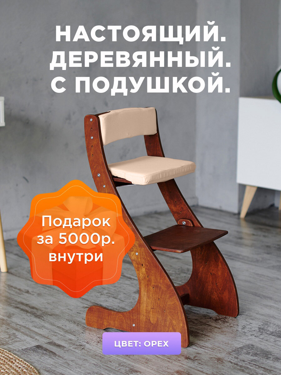 Растущий стул детский Klikkin орех с подушками Платина