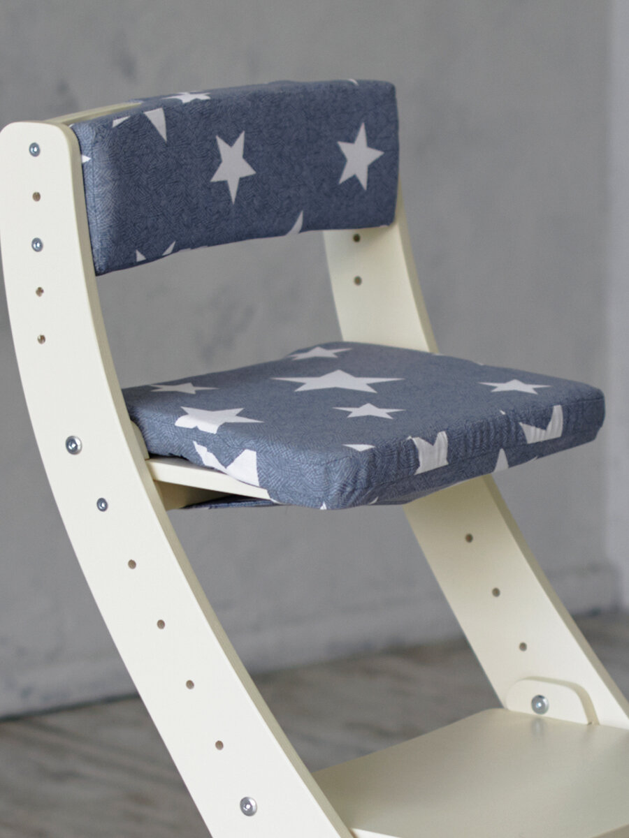 Растущий стул детский Klikkin белый и подушки синие звезды