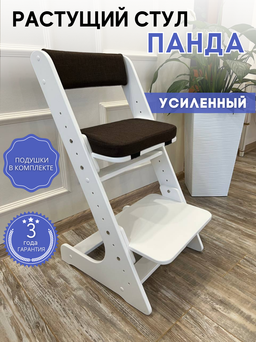 Растущий стул Панда белый усиленный подушки коричневые интересное: