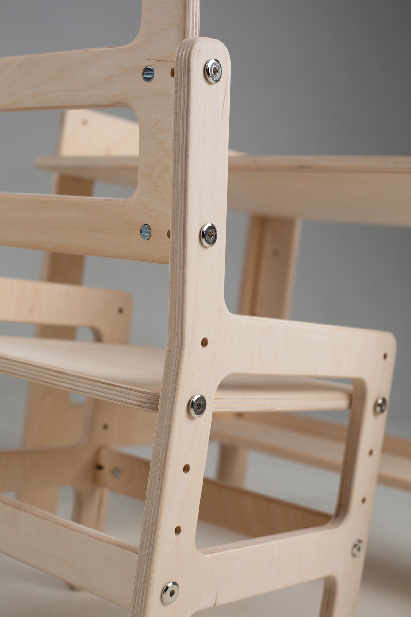 Стул ученический регулируемый "ДЭМИ" СУТ.01, 400х330-343х795-874 мм, серый каркас, фанера лак