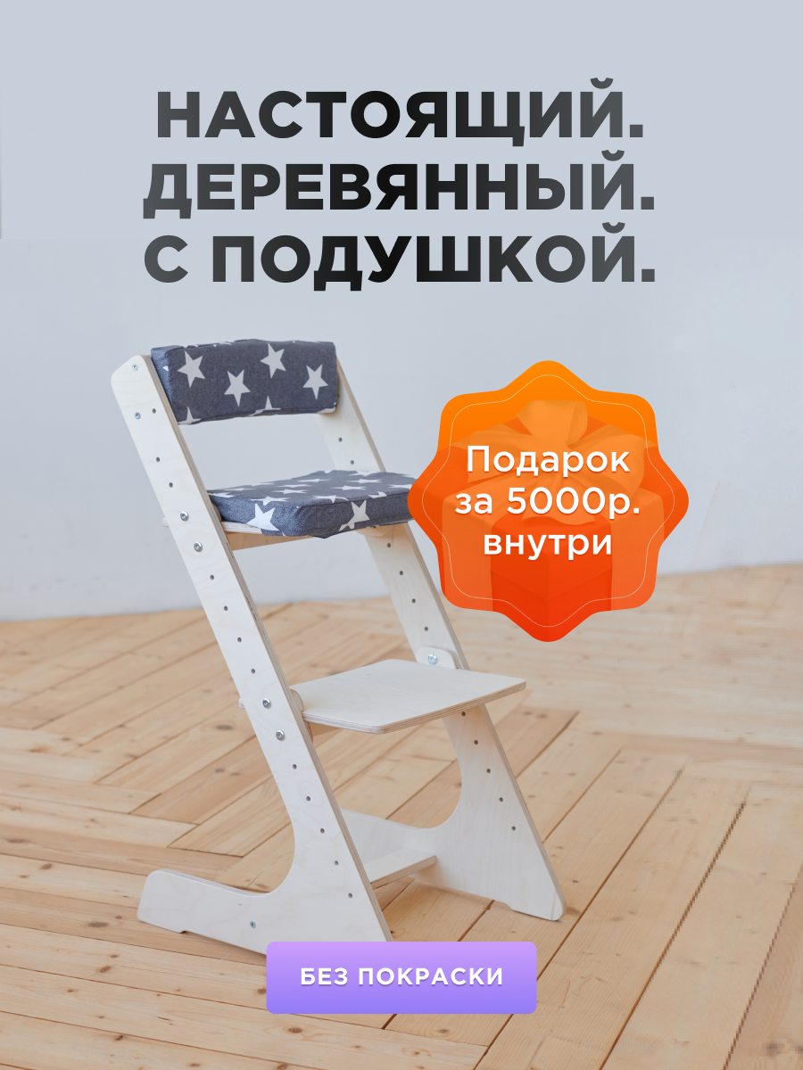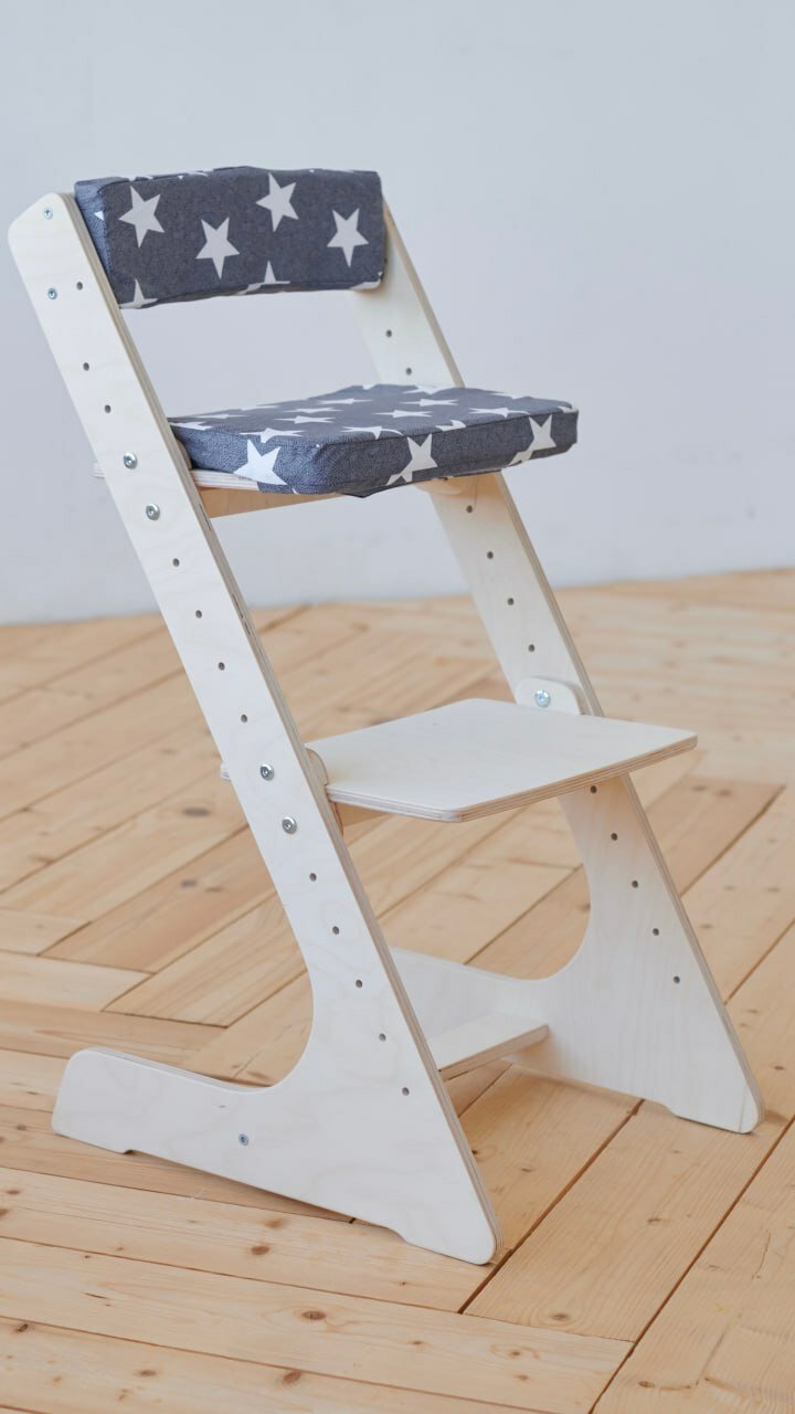 Растущий Стул детский для школьника Klikkin Дуб и подушки Серая звезда