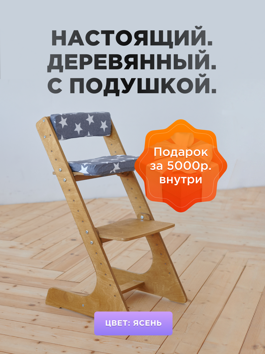 Растущий Стул детский для школьника Klikkin Ясень и подушки Серая звезда