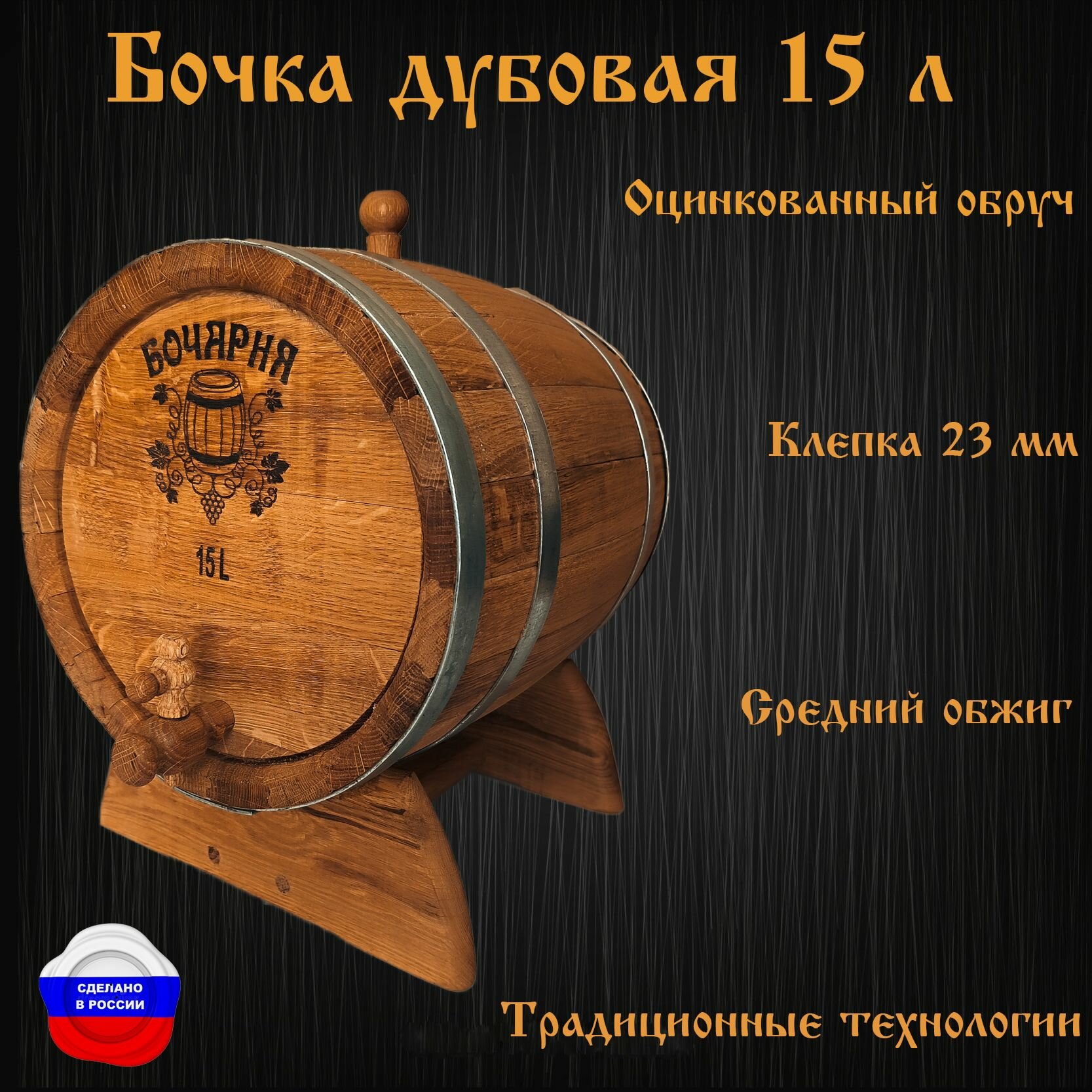 Бочка дубовая 15 литров фаска (пробка, кран, подставка) интересное: