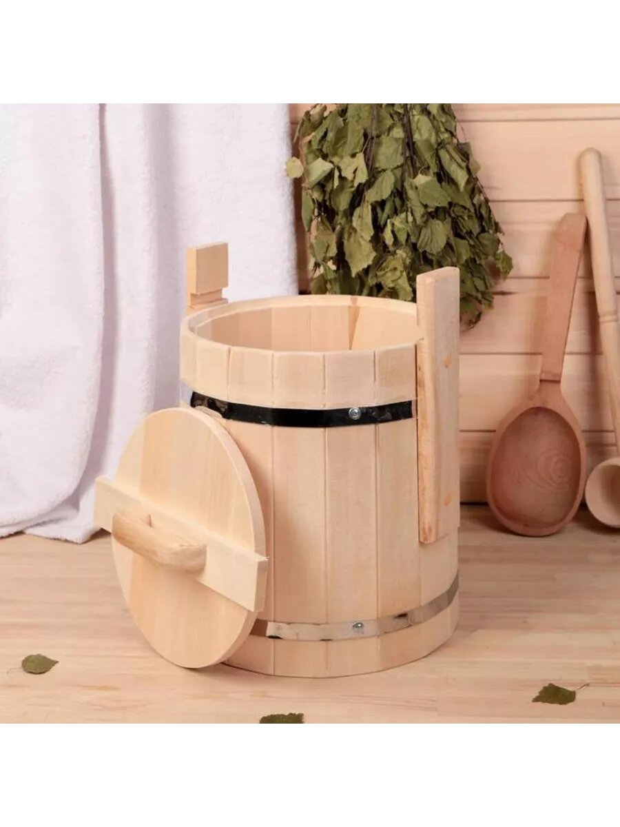 Кадка из липы, 10л, нержавеющий обруч, с крышкой,"Добропаровъ" Добропаровъ 1490754 . интересное: