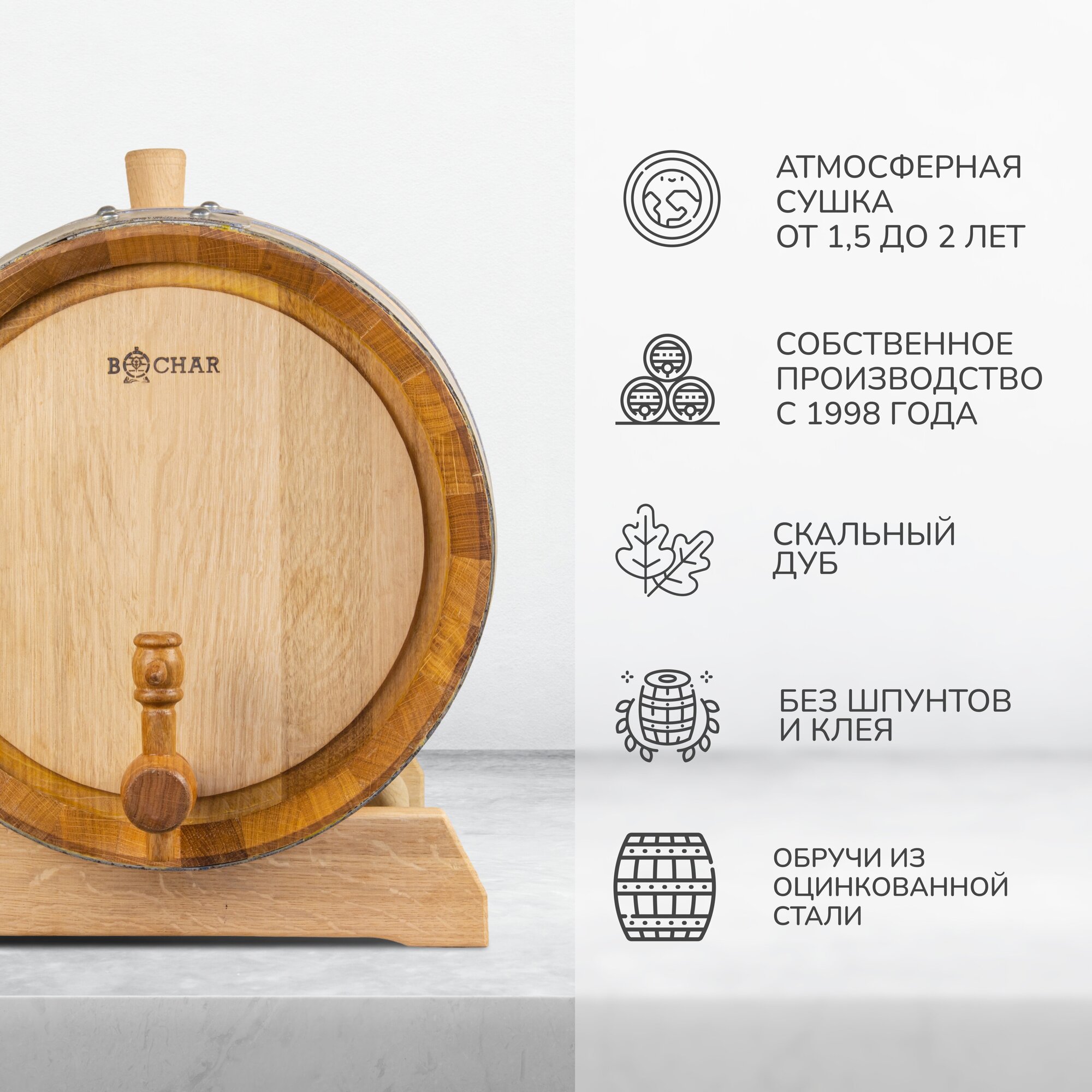 Бочка дубовая 30 литров (сильный обжиг) "Бочар" с краником и подставкой, ГОСТ 8777-80 интересное: