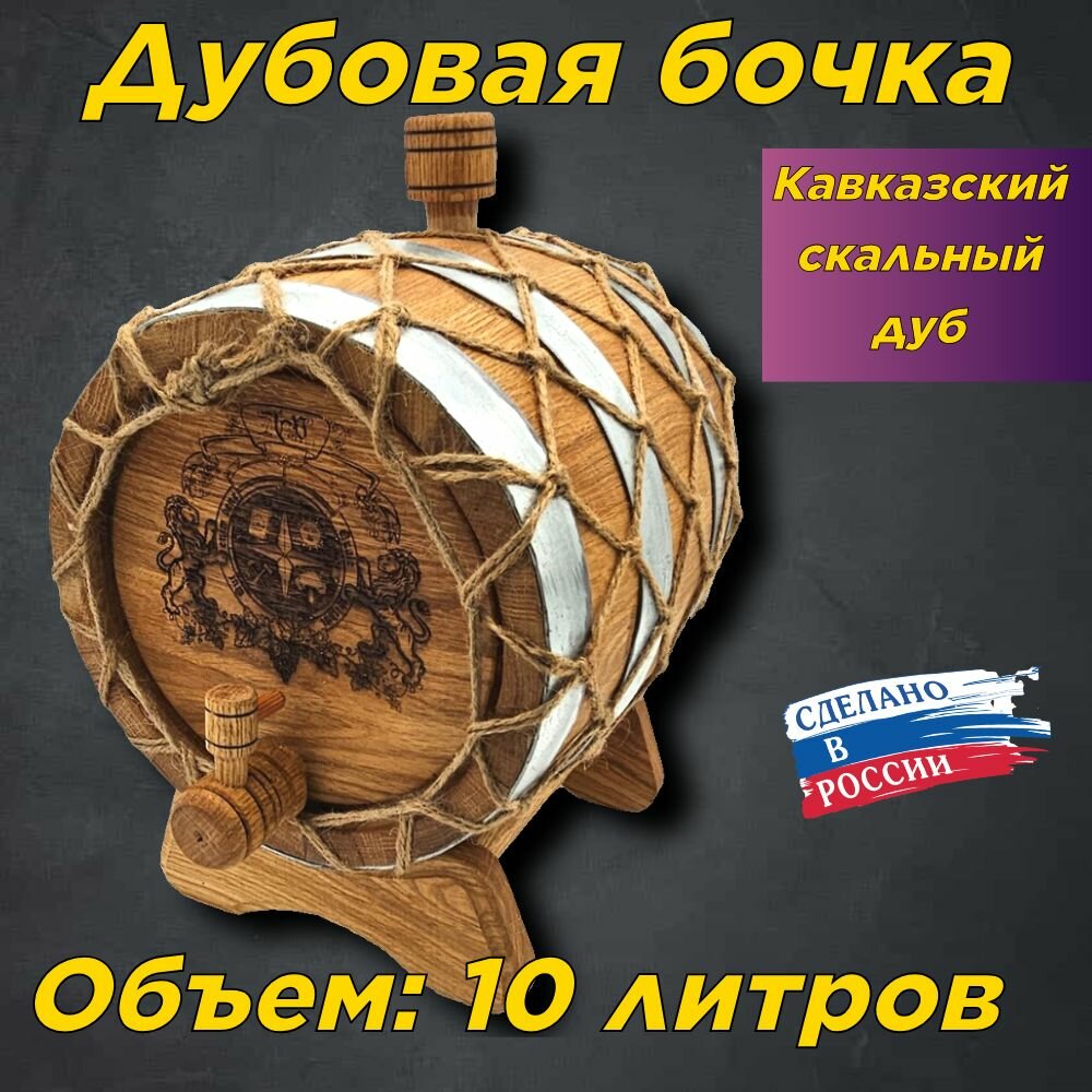 Купить Бочка для самогона, виски, коньяка из кавказского скального дуба в оплетке 10 л.
